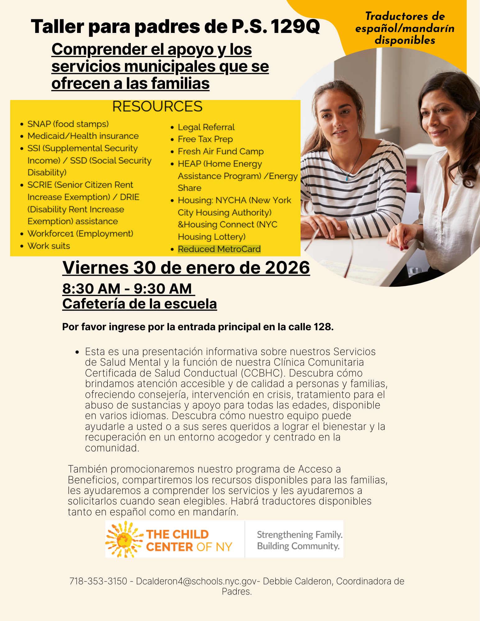 P.S. 129Q Parent Workshop Presented by The Child Center of NY Friday, January 30 at 8:30 AM